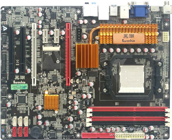 Данная платформа изготовлена с применением более надёжных конденсаторов OC-CON с твёрдым электролитом и оборудована оригинальной по конструкции медной системой пассивного охлаждения, состоящей из трёх радиаторов разных размеров и одной тепловой трубки. Что же касается прочих технических характеристик новинки, рассчитанной на установку процессоров AMD в исполнении Socket AM3, то они выглядят так: