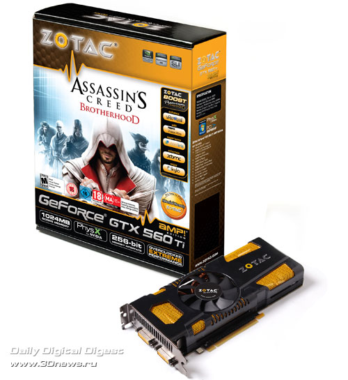 Вместо лицензионной копии игры Prince of Persia: The Forgotten Sands в комплекте поставки анонсированной ZOTAC GeForce GTX 560 Ti AMP! Edition теперь находится ваучер для скачивания игры Assassin’s Creed: Brotherhood от компании Ubisoft в день ее официального релиза.